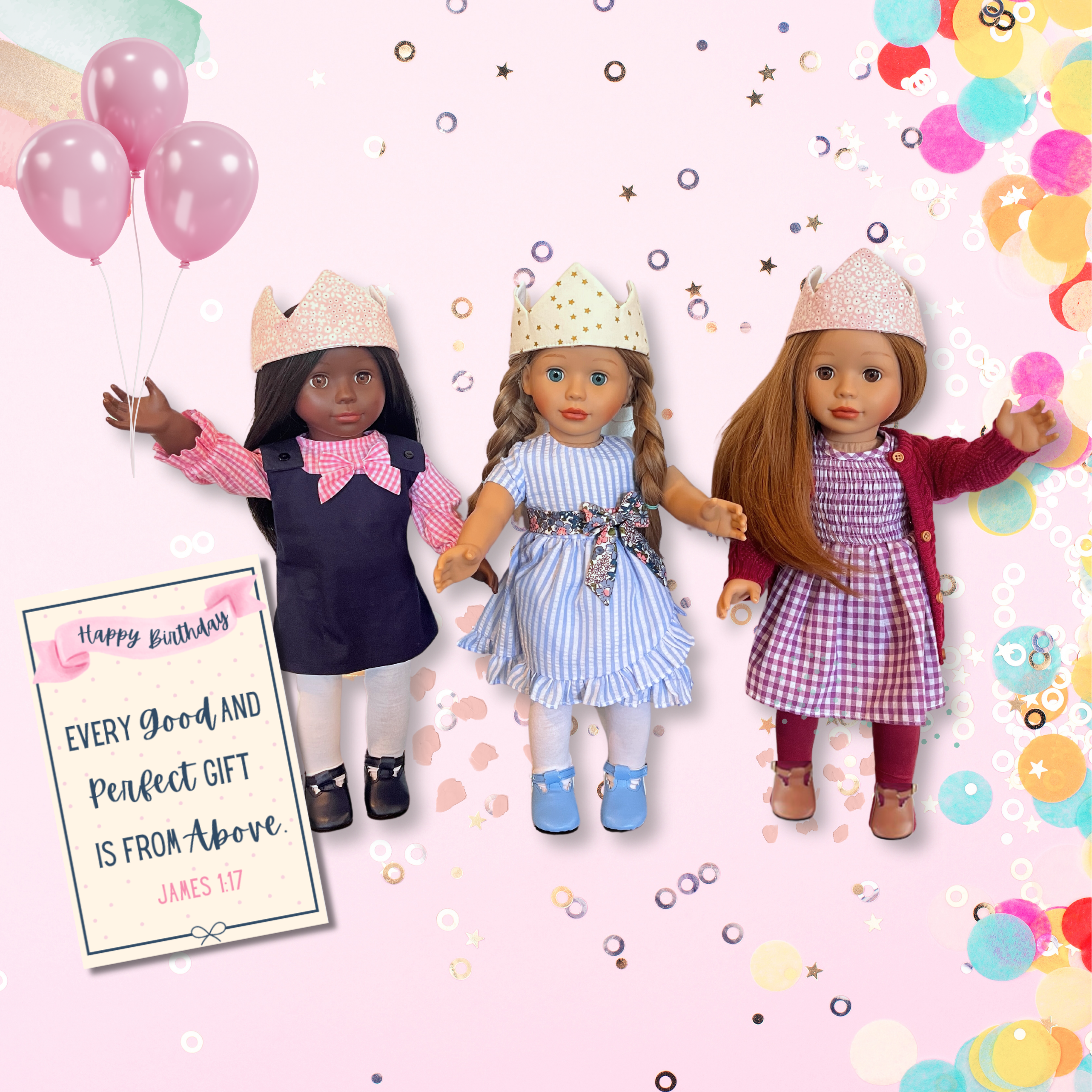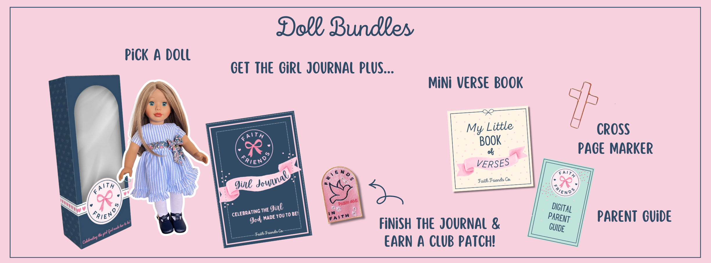 Includes an 18-inch Grace, Faith or Hope doll, 40-page girl journal, mini verse book, cross Bible page marker, bonus club patch & digital parent guide! *Limited Supply.