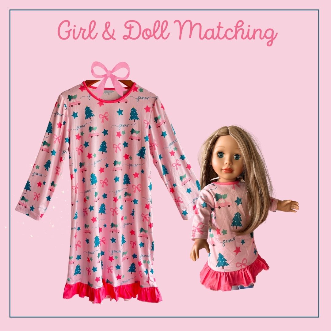 Classic and sweet girl & doll matching gowns and pajamas to celebrate the season and beyond.
