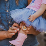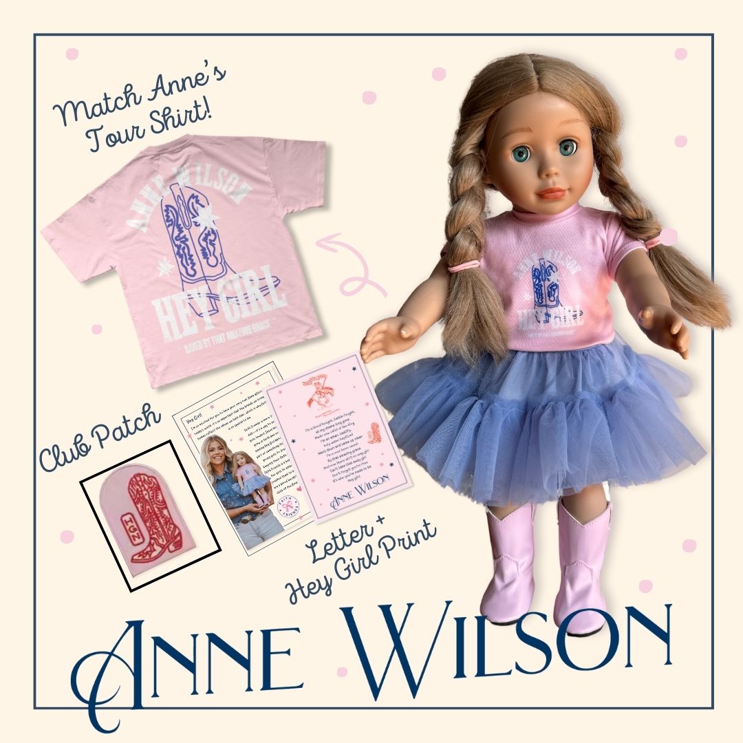 This limited-edition Anne Wilson doll comes dressed in her signature "Hey Girl" tour t-shirt, tulle skirt, and pink cowgirl boots, along with exclusive extras like a Hey Girl Nation patch, plus a personal letter and print from Anne—encouraging girls to embrace who God created them to be!