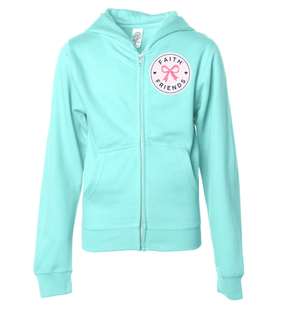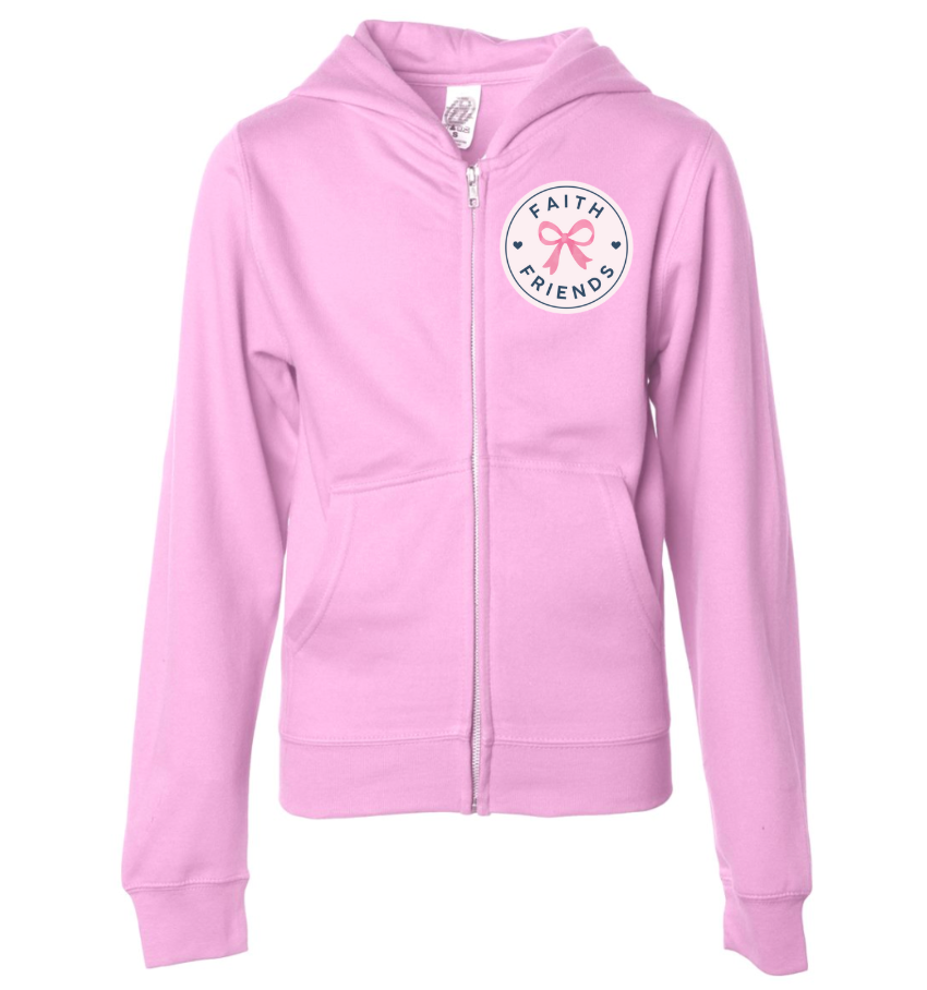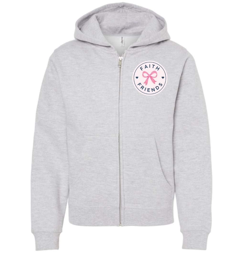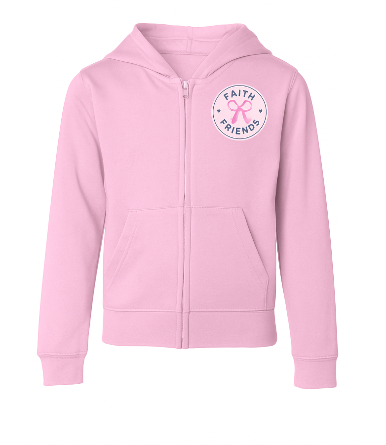 You asked, we answered! More cozy gear for your little Faith Friends! This soft, premium zip hoodie features a jersey-lined hood and comfy 80/20 cotton blend—great for layering through every season.