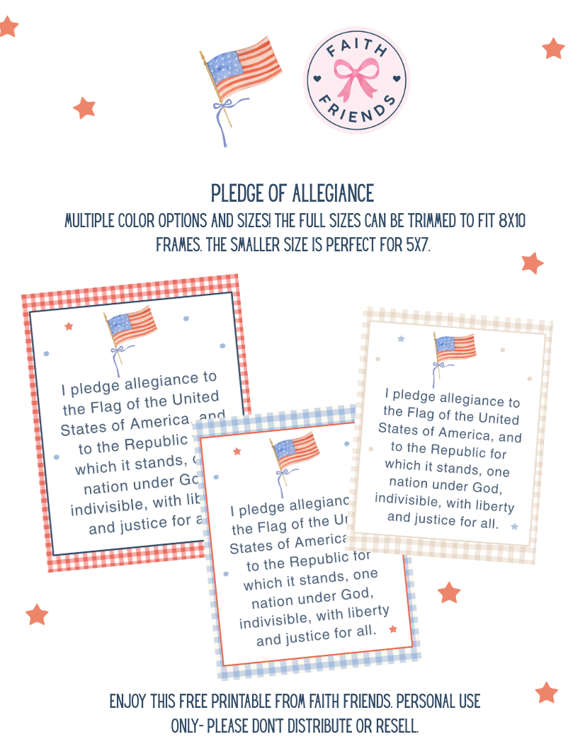 Out of stockStart your family’s day with truth and gratitude for our country. This printable features the Pledge of Allegiance in a simple, timeless design—perfect for morning time, homeschool, or your child’s room.