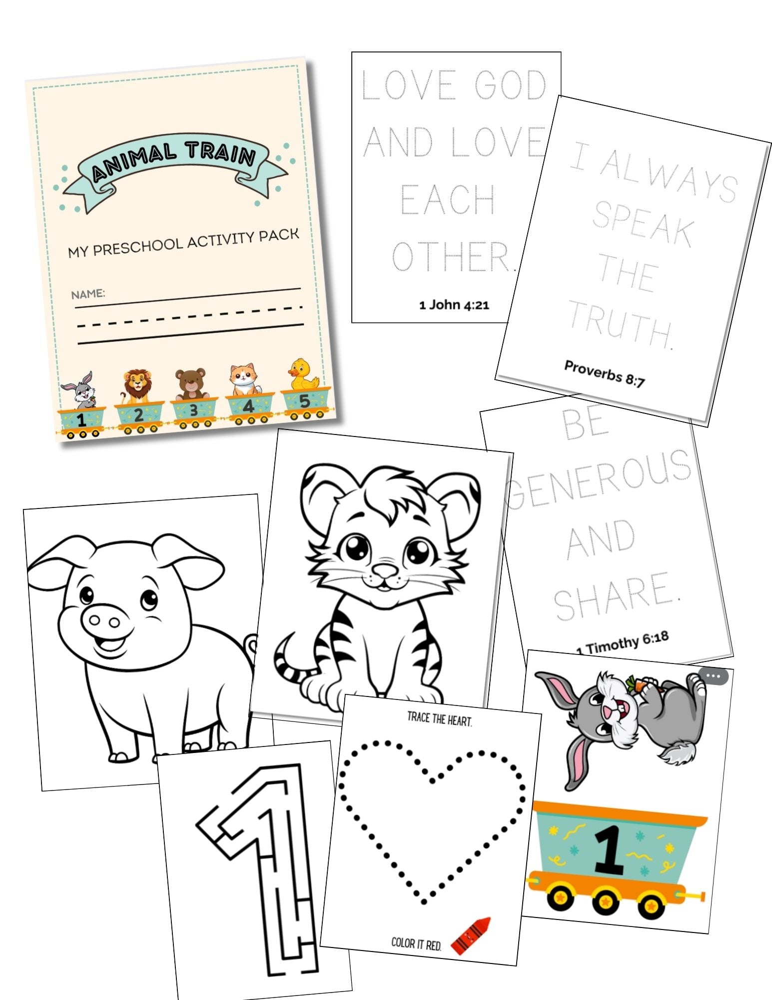 Animal Train & Scripture Activity Pack: Preschool / Homeschool Digital Download