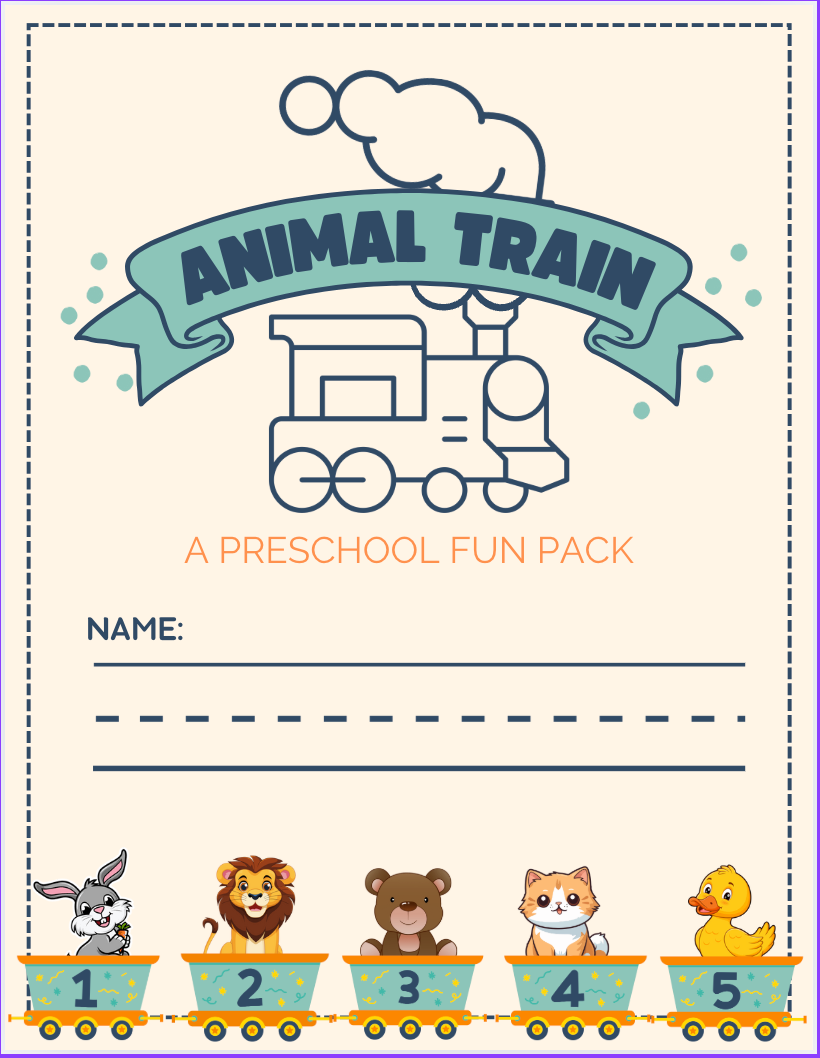 - Ink-friendly: Designed for easy printing at home or a local printer, helping you keep costs down (tip: many local libraries will print for free!). The color animal train activity is offered in a separate file for ease of color printing + an all black & white file (see printing tips below).